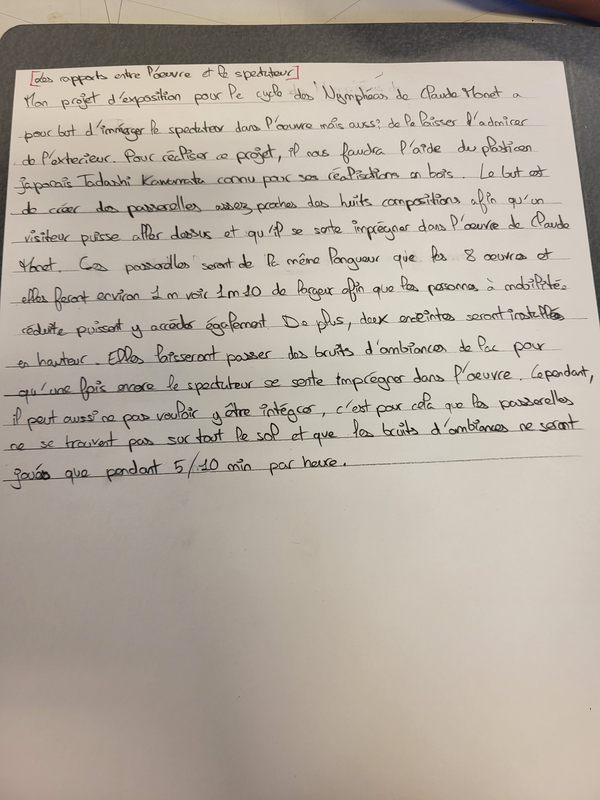 | Rapports détaillés, argumentés entre œuvre et spectateurs, spectateurs et espace | 0,5 / 0,5 |