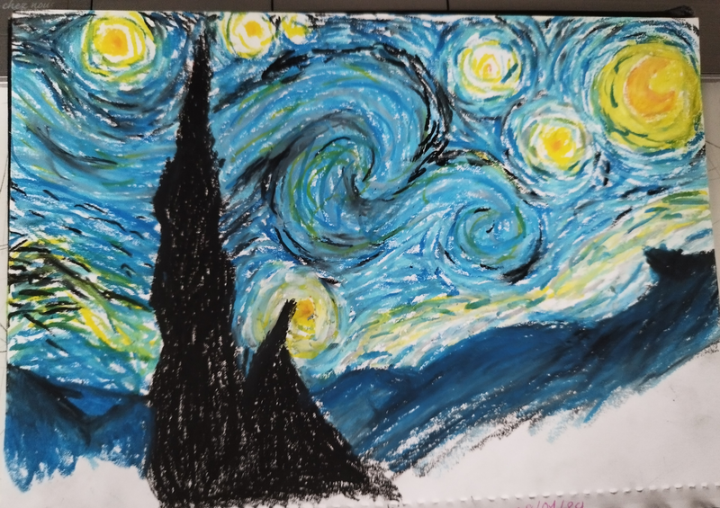 La Nuit Etoilée - Vincent Van Gogh - Pastels a l'huile (voir croquis, fiche van gogh)