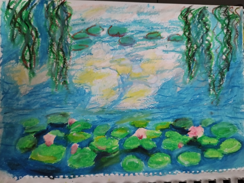 Les Nymphéas - Claude Monet - Pastels à l'huile (voir croquis, fiche Monet)