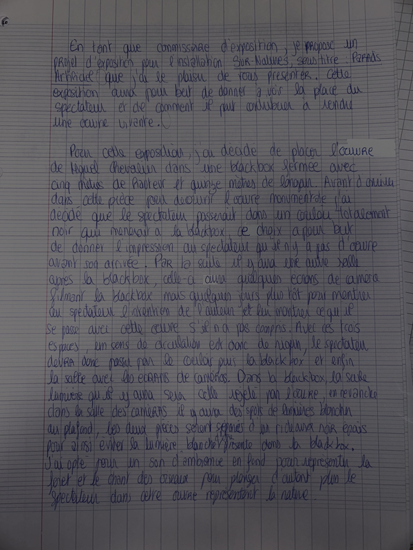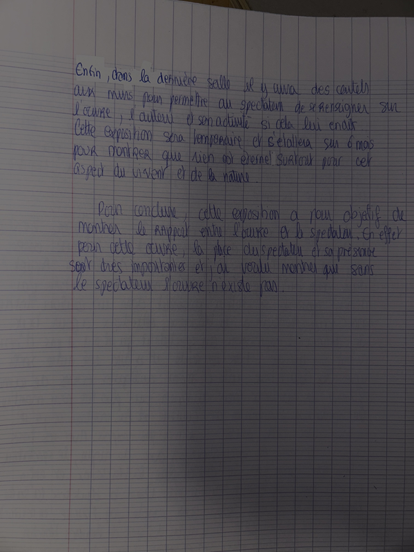 Rapports détaillés, argumentés entre œuvre et spectateurs, spectateurs et espace : que voulez-vous que le spectateur ressente ? | 0,5 / 0,5 |