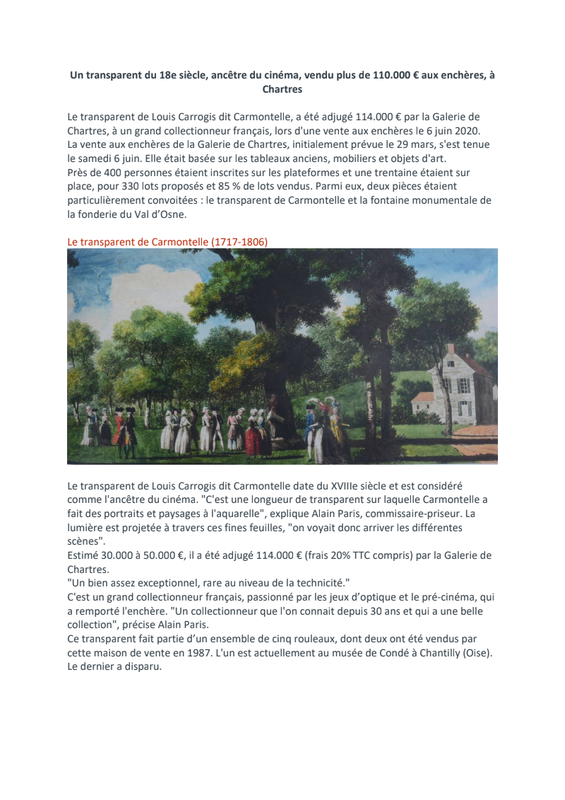 Au cœur de la seconde moitié du XVIIIe siècle, Carmontelle (1717-1806) s’inscrit dans la philosophie du Siècle des lumières et associe littérature, musique et technologie au service d’un ensemble pictural original. Ses fameux transparents en constituent l’innovation majeure.